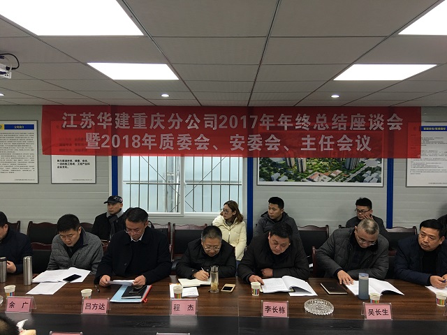 1月26日,重庆分公司在岳池锦绣新城项目部会议室召开2017年年终总结座谈会暨2018年首次质委会、安委会、主任会议,公司常务副总经理程杰、总会计师李长栋、珠海区域公司总经理吕方达和重庆分公司经营层、各部门负责人及各工程处、直管项目部负责人共24人参加了会议。