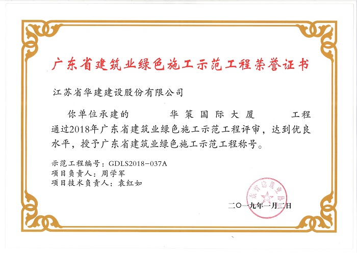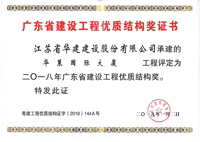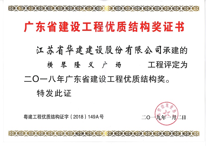 公司3个项目喜获多项省级表彰 时间:2019-04-10 3314 近日,广东省建筑业协会、广东省建筑安全协会分别发文表彰了一批优质结构工程、绿色施工示范工程和安全文明工地,公司3个项目荣列榜单。其中,阳光马德里、横琴隆义广场、华策国际大厦均被表彰为二〇一八年广东省建设工程优质结构奖,华策国际大厦被授予广东省建筑业绿色施工示范工程称号,横琴隆义广场被评为2017年广东省房屋市政工程安全生产文明施工示范工地。