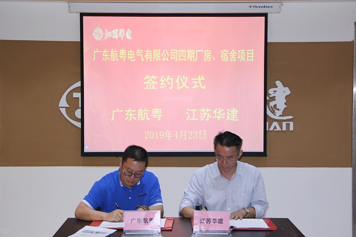 4月23日,公司举行广东航粤四期厂房项目签约仪式。公司总经理吕方达、副总经理、总工程师周学军、副总经理朱涛和广东航粤电气有限公司董事长杨建丰、总经理岳晓访、董事长助理黄创群等参加签约仪式。
