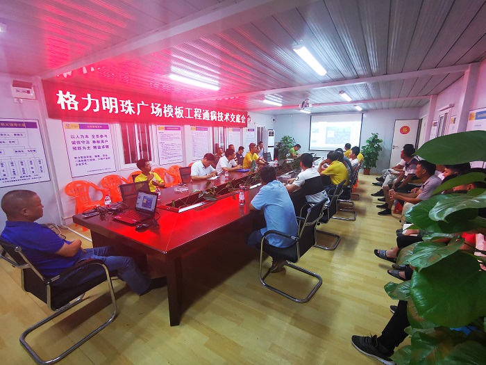 7月10日,珠海分公司在格力明珠广场项目部组织召开模板工程通病交流会,公司副总经理、总工程师周学军携技术质量处赴格力明珠广场项目部对项目现场相关人员进行培训。