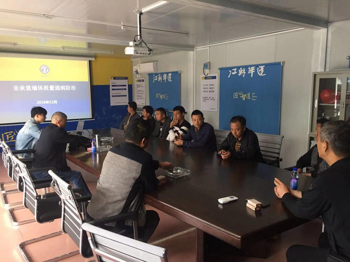 12月21日,珠海分公司在航粤电气项目部组织召开砌体、外墙饰面工程质量通病防治交流会,公司副总经理、总工程师周学军携技术质量处赴项目部对项目现场相关施工人员进行培训。