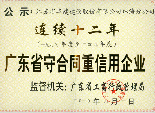 2010年广东省连续十二年守合同重信用企业