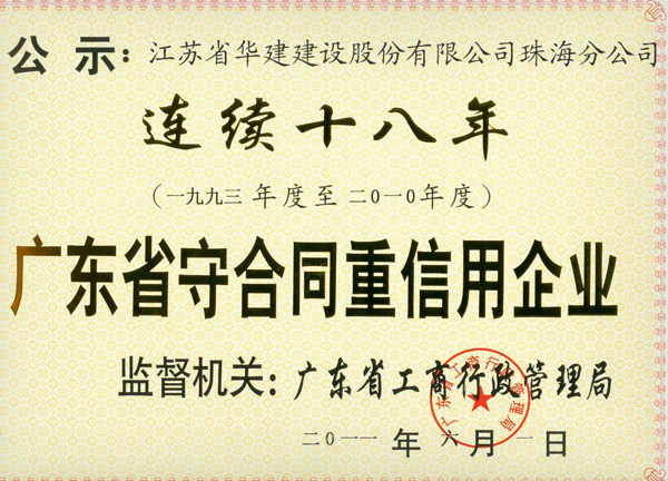 2011年广东省连续十八年守合同重信用企业