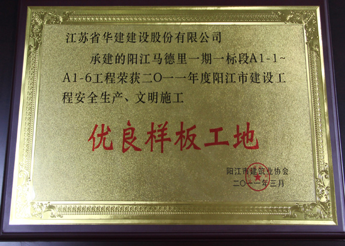 2011阳江马德里项目获阳江市安全生产文明施工优良样板工地