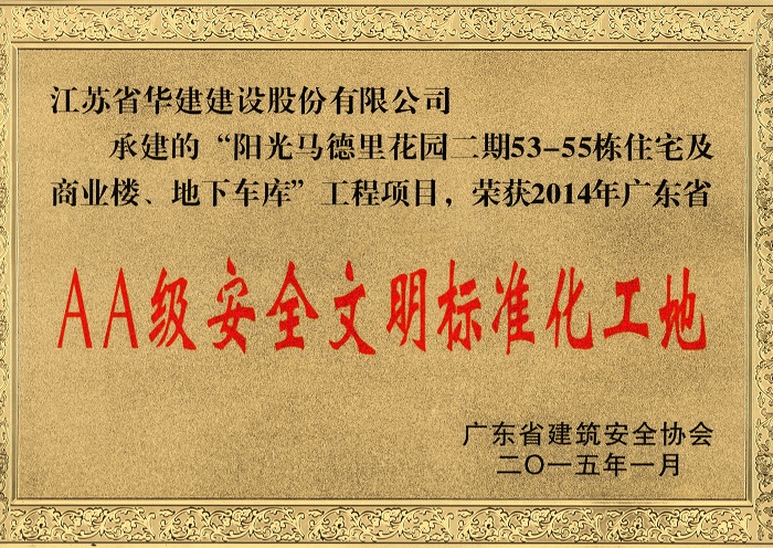 阳光马德里二期工程荣获2014年广东省AA级安全文明标准化工地