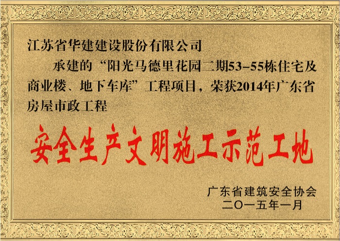 阳光马德里二期工程荣获2014年广东省房屋市政工程安全生产文明施工示范工地