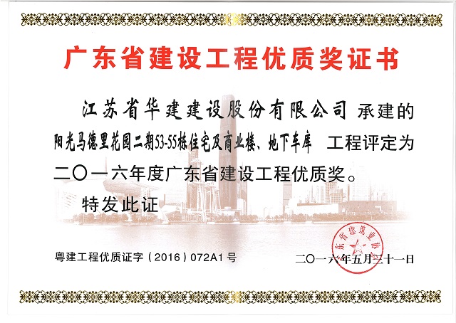 2016年度阳光马德里53-55栋建设工程广东省优质奖