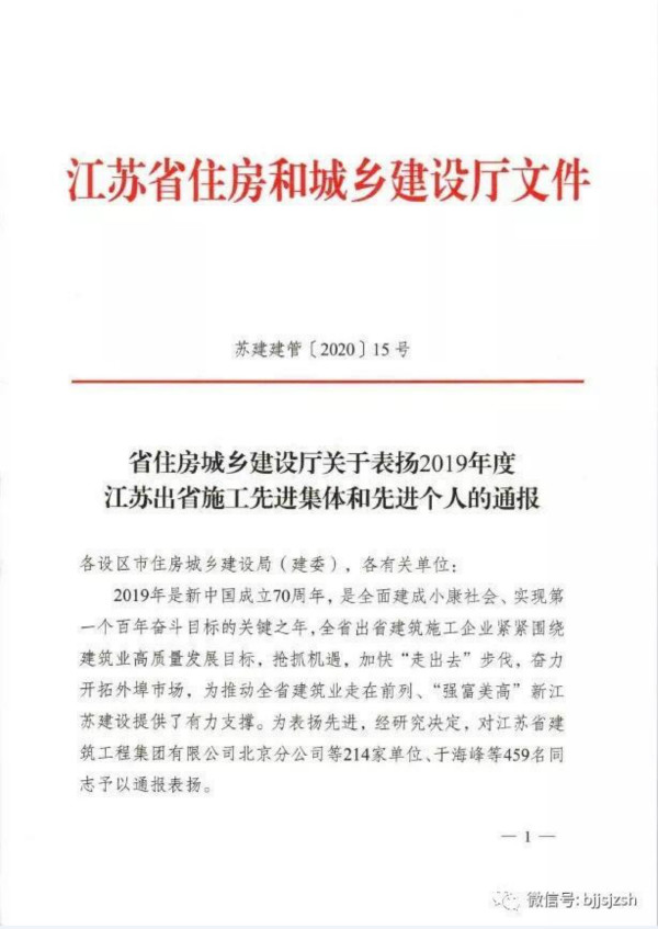 近日,开云网页版页面登录北京分公司被江苏省住建厅表彰为“2019年度出省建筑施工先进集体”。当前疫情...