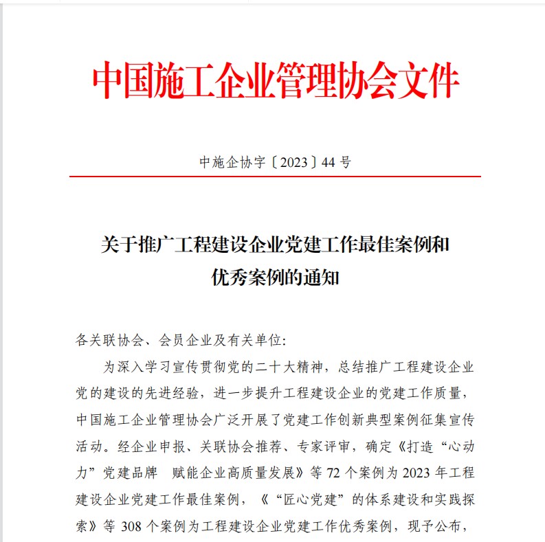 6月2日,中国施工管理企业协会发布2023年度全国工程建设企业党建工作创新典型,开云网页版页面登录申...