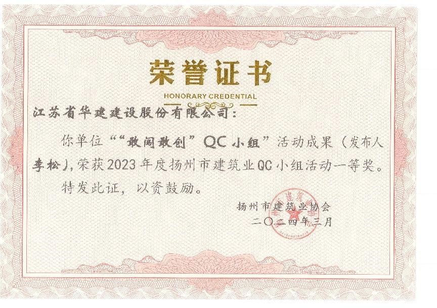 近日,扬州市建筑业协会发布了2023年扬州市建筑业QC小组活动成果评价结果,公司13项QC...