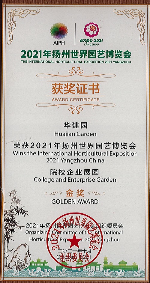 近日,2021年扬州世界园艺博览会国际竞赛获奖结果揭晓,华建园摘得院校企业展园的唯一金奖。...