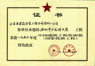 设备安装工程,严格执行了三检制度,层层把关,电气、给排水系统经测试,均满足设计要求。工程于1996年10月被评为深圳优质样板工程第一名,1996年11月获江苏省优质工程金牌奖,继后荣获1997年度建筑工程鲁班奖。