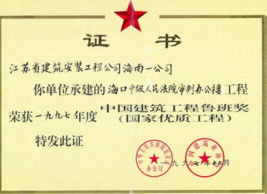 海口市中级人民法院审判办公楼位于海口市金宇路8号,1995年4月竣工,1996年6月被评为海南省优质工程,并荣获海南省优秀建筑二等奖,1997年12月荣获1997年度建筑工程鲁班奖。