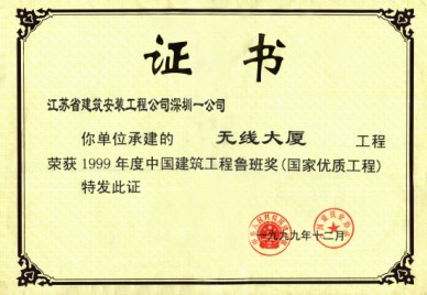 深圳无线大厦 时间:2008-12-29 11396 无线大厦(现名国通大厦)位于福田区新洲,建筑面积73069M2,高度201.5M,地下室2层,地上43层,是一座高智能化的电信写字楼,结构设计为钢筋砼框架一筒体结构,8-32层为无粘结预应力楼板砼,工程总造价6亿元。工程于1995年6月开工,1997年12月竣工,施工中主要应用了无粘结预应力砼、高强泵送砼、粗直径钢筋连接、外墙干挂花岗岩等新技术。荣获深圳市、广东省、江苏省的优质样板工程,“江苏省新技术应用示范工程”、江苏省“扬子杯”奖和99年度国家“鲁班奖”。