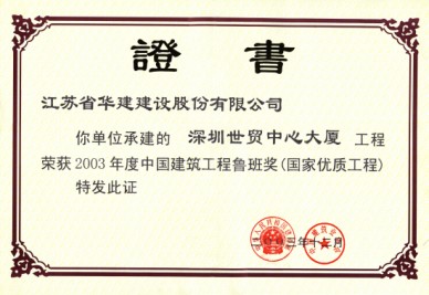 招商银行大厦工程1998年6月18日开工,2001年9月29日竣工,观感得分91.9分,评定为“优良工程”;先后荣获深圳市优质样板工程“金牛奖”、江苏省优“扬子杯”、广东省优良样板工程,2003年荣获“中国建筑工程鲁班奖”。