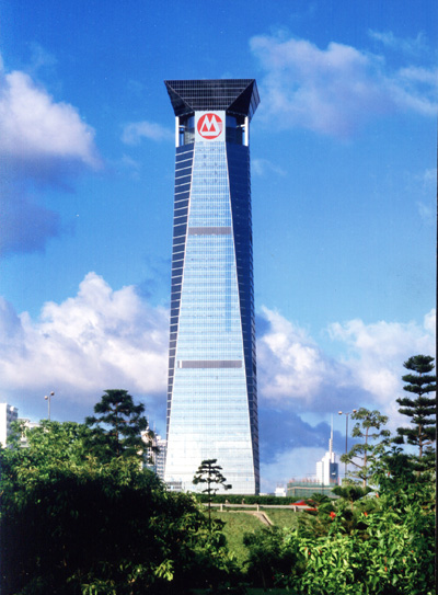 深圳招商银行大厦(原名深圳世贸中心大厦),位于深圳中心区西部深南大道旁,是深圳特区重要标志性建筑之一。该工程建筑面积119000平方米,地下3层,地上53层,建筑总高度237.2米;裙楼外墙为干挂花岗岩,裙楼以上外墙为单元式玻璃幕墙,屋面为直升飞机停机坪。主楼结构采用钢骨混凝土框架—筒式结构,6层设钢桁架转换层,22层和38层设钢桁架刚性层,钢骨、钢桁架杆件均采用50厚钢板焊接方钢管,整个工程钢结构用量近万吨。