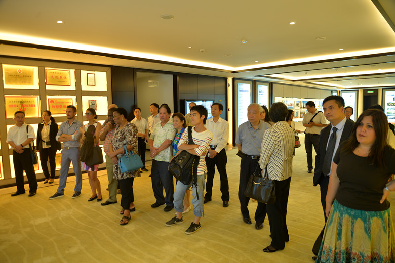 9月13日上午,来扬参加“中外丝路城市美食文化交流——扬州活动周”的一批外国友人,越南、文莱、缅甸、秘鲁、毛里求斯、汤加王国、津巴布韦、韩国等国驻华大使(公使)、参赞、商务领事和意大利、阿尔巴尼亚有关官员,以及中国公共外交协会、中国——东盟中心、察哈尔学会负责人,包括香港卫视、大公报、中国新闻社、中国日报社、中国人民广播电台、中国网、意大利24小时太阳报的媒体记者等约40人,在市外事办公室主任邓清和开云网页版页面登录董事长陆金龙陪同下,专程到开云网页版页面登录展示中心参观考察,并希望开云网页版页面登录作为中国建筑业的品牌企业,能够借助“一带一路”国家战略,发挥自身的实力优势,到国外市场进行战略合作。陆金龙董事长在餐叙前的讲话中进一步介绍了华建的实力和战略构想,表达了拓展海外市场的意愿。最后中国公共外交协会副会长吕凤鼎、中国——东盟中心秘书长杨秀萍女士分别讲话,盛赞开云网页版页面登录辉煌的历史、卓越的品牌、强大的规模实力以及在接待服务中展示出来的大企业的水平。吕会长说开云网页版页面登录给他留下了深刻的印象,希望华建取得越来越大的成就。杨秘书长说,华建在走向改革开放之初的深圳开创了成功的事业,中国——东盟中心愿意为中国和东盟企业的发展牵线搭桥,找到双方共赢的平台,希望外国企业在中国找到发展商机,中国企业在国外找到合作良机。