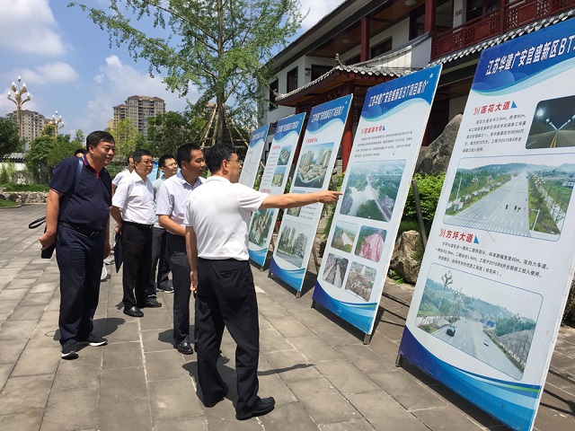 7月10日,江苏省出省建筑业企业地区党委在广安开展党务干部培训期间,组织参训干部约40人赴公司岳池城东新区PPP项目指导观摩。江苏省住建厅党组书记顾小平,厅机关职能部门主要负责人、江苏出省建筑业企业10个地区党委的书记、党委委员和企业代表参加活动。