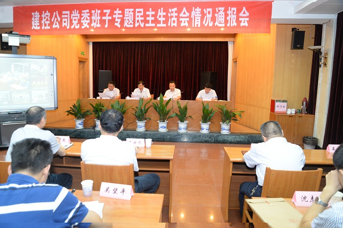 8月8日上午,按照市教育实践活动领导小组办公室的统一部署,公司党委在后一楼会议室召开了建控公司党委班子专题民主生活会情况通报会,市委第12督导组组长戴前良、副组长陈贵江和督导组成员吴坚平、沈志远、徐峰到会指导。党委书记陆金龙主持会议,并对公司党委班子专题民主生活会情况进行通报。副书记宗有农、吴士茂,党委委员陈荣春、程杰、钱启明、王宏到会。建控机关、公司总部中层以上人员、全体党员;直属单位党组织主要负责人、分管负责人、党务部门负责人;离退休党员代表共57人参加会议。公司驻外各分支机构中层以上人员、全体党员以视频形式收听收看。